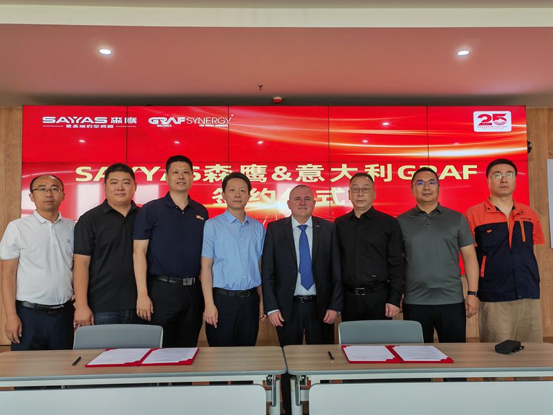 2023年6月森鹰股份SAYAS投资3000万人民币引进了意大利GRAF集团与山东辰禾智能装备有限公司联合开发制造的塑料门窗智能生产线。意大利GRAF集团及辰禾智能将为森鹰股份提供全自动、智能化的塑料门窗生产系统解决方案。